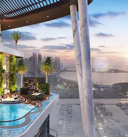 Damac Bay 2 by Cavalli is a luxurious high-rise development located in Dubai Harbour. Designed by Cavalli, it offers stunning waterfront views and features one to three-bedroom apartments, with some boasting private pools. Residents will have access to a variety of high-end amenities, including an infinity pool, floating relaxation pods, and beauty treatments in glamping tents. Completion is expected in Q1 2028.